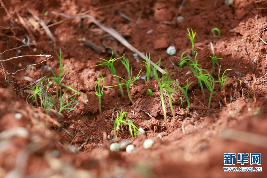 图为首批飞播的树种已出苗(9月29日摄)。新华网 赵普凡 摄