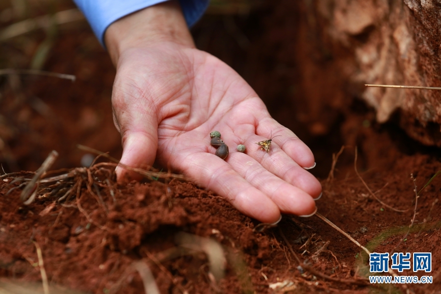 图为工作人员展示复播树种(9月29日摄)。新华网 赵普凡 摄