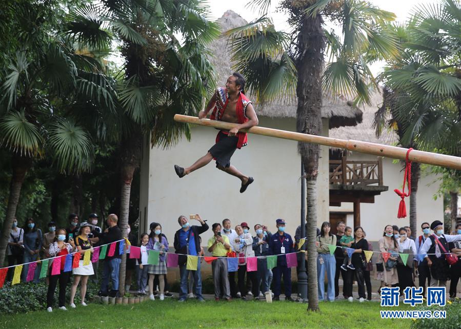 10月1日,在云南省昆明市,云南民族村的演员为游客进行民俗表演。 国庆中秋长假期间,各地举办丰富多彩的民俗活动,欢度假日。 新华社发(梁志强 摄)