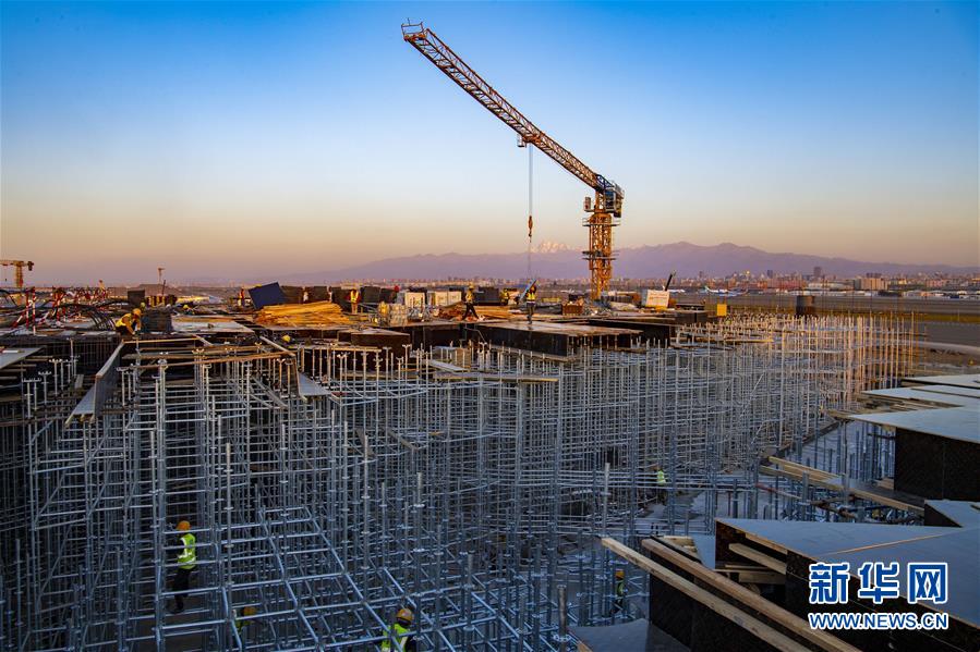 新疆乌鲁木齐机场改扩建工程航站楼施工现场(10月2日摄)。新华社记者 胡虎虎 摄