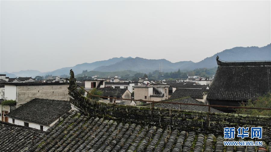 这是9月26日拍摄的呈坎古村一角(无人机照片)。 呈坎古村位于安徽省黄山市徽州区,距离合福高铁黄山北站30分钟车程,始建于东汉时期,现有古建筑遗址100余处。 秋日呈坎,古村与远山交相辉映,构成一幅美丽的画卷。 新华社记者 黄博涵 摄