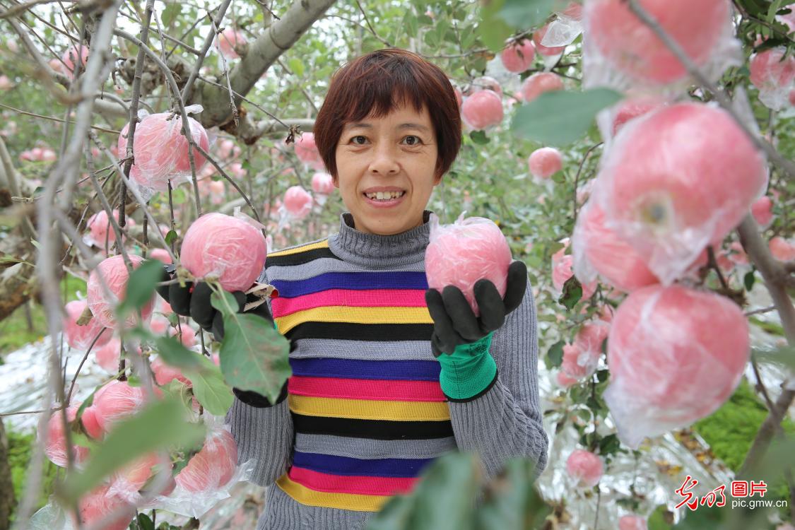 河南三门峡:苹果成熟采摘忙