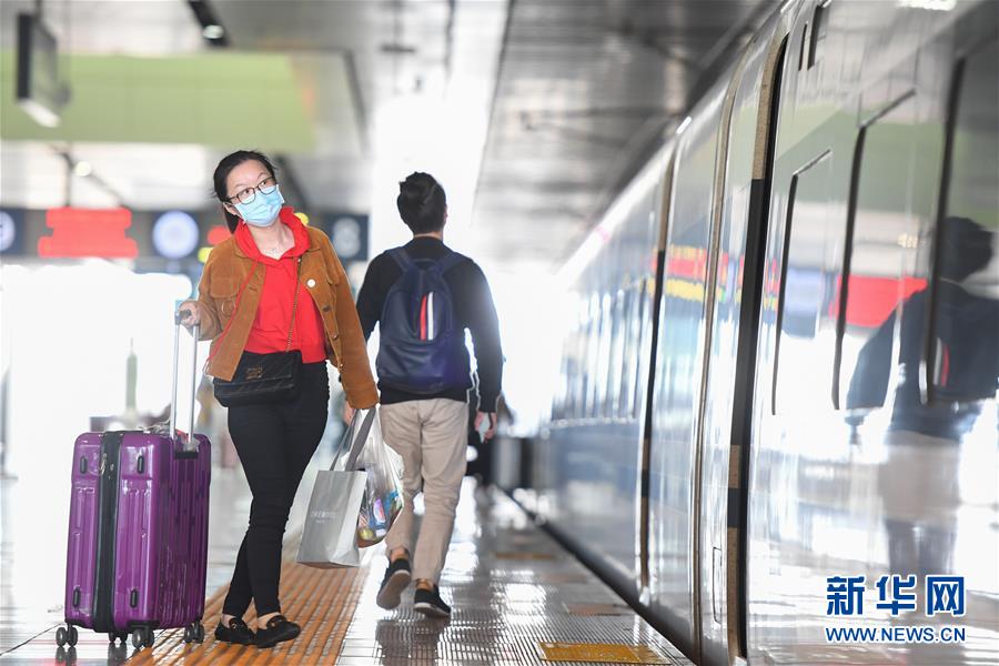 10月8日,旅客在长沙南站准备乘车。 国庆长假临近尾声,多地交通运输部门迎来返程客流高峰。 新华社记者 陈泽国 摄