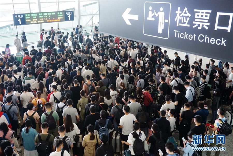 10月8日,旅客在杭州火车东站候车大厅候车。 国庆长假临近尾声,多地交通运输部门迎来返程客流高峰。 新华社发(龙巍 摄)