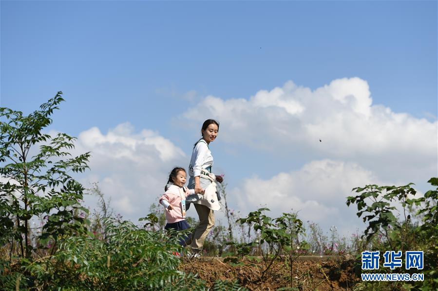 10月8日,在合肥市蜀山区乡村振兴示范区小庙镇小岭南,家长带着孩子参与健身跑活动。