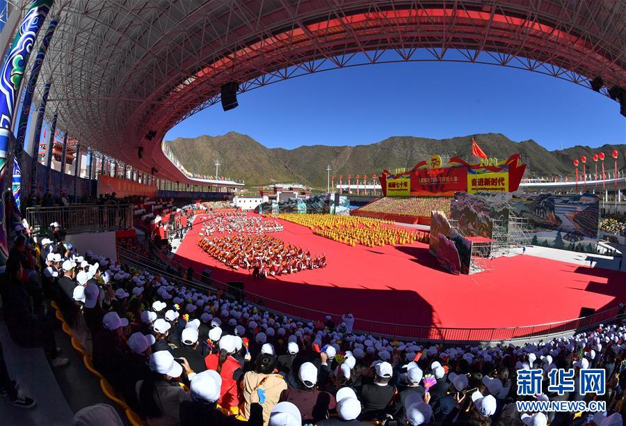 这是10月9日拍摄的西藏昌都解放70周年庆祝大会现场。 当日,西藏昌都解放70周年庆祝大会在昌都市举行。 新华社记者 晋美多吉 摄