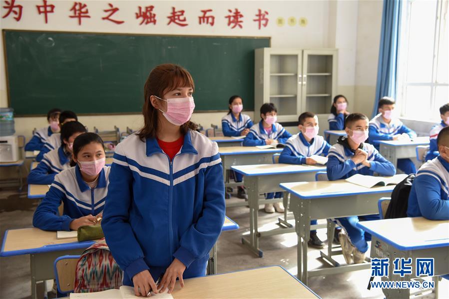 新疆喀什市东城第八初级中学初三年级学生在数学课上回答老师提问(3月16日摄)。新华社记者 丁磊 摄