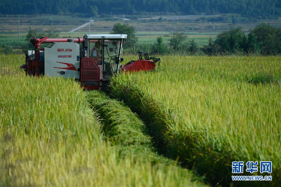 10月10日,在福建省南平市浦城县仙阳镇麒麟畈,收割机在收割常规稻“福香占”。 近日,福建省南平市浦城县约48万亩水稻喜获丰收。近年来,该县持续打造现代绿色农业,让武夷山脉腹地出产的高品质大米飘香四海。 新华社记者 宋为伟 摄
