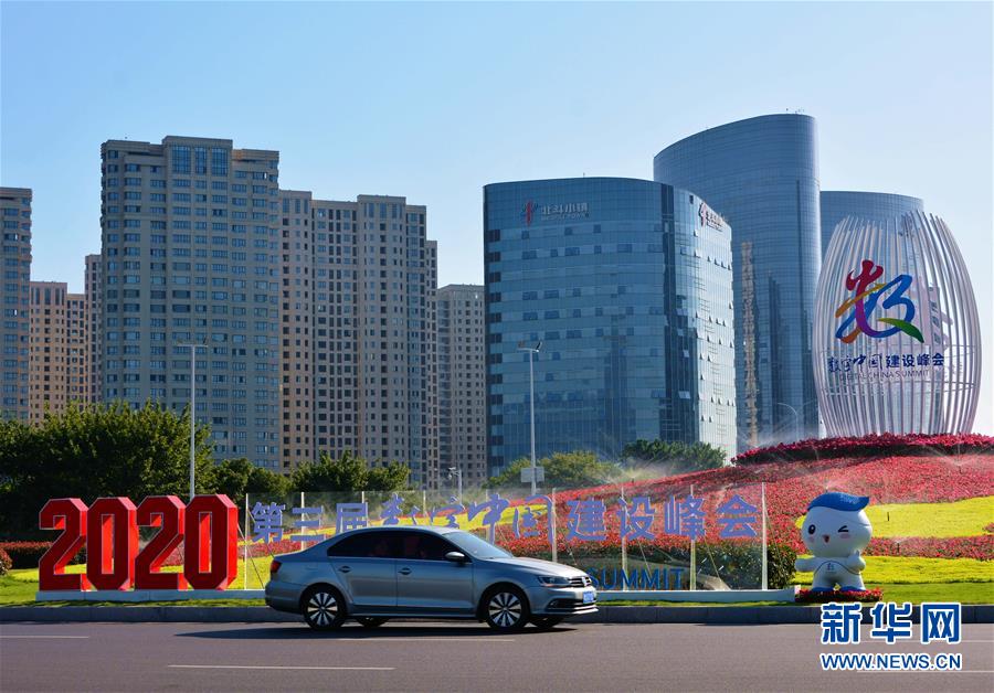 这是10月10日拍摄的第三届数字中国建设峰会主会场——福州海峡国际会展中心前的花坛。新华社记者魏培全摄