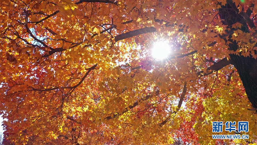 这是10月12日拍摄的五角枫生态旅游景区里的一棵五角枫。 金秋时节,内蒙古兴安盟科尔沁右翼中旗五角枫生态旅游景区的五角枫迎来最佳观赏期,棵棵枫树点缀了秋日草原,美景如画。 新华社记者 徐钦 摄