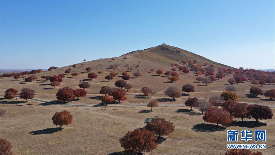 这是10月12日拍摄的五角枫生态旅游景区景色。 金秋时节,内蒙古兴安盟科尔沁右翼中旗五角枫生态旅游景区的五角枫迎来最佳观赏期,棵棵枫树点缀了秋日草原,美景如画。 新华社记者 徐钦 摄