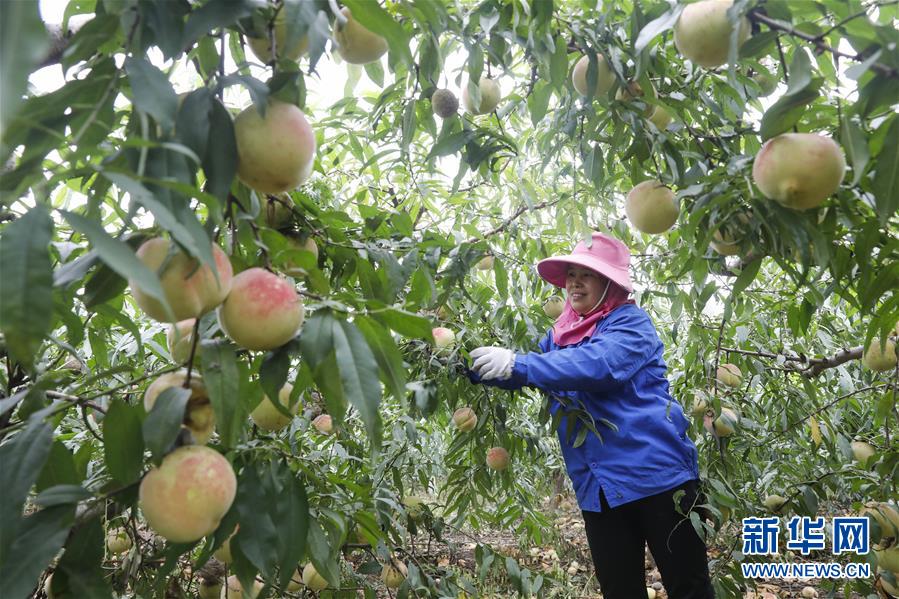 10月12日,河南省平顶山市宝丰县商酒务镇韩庄村村民在采摘富硒桃。新华社发(何五昌 摄)