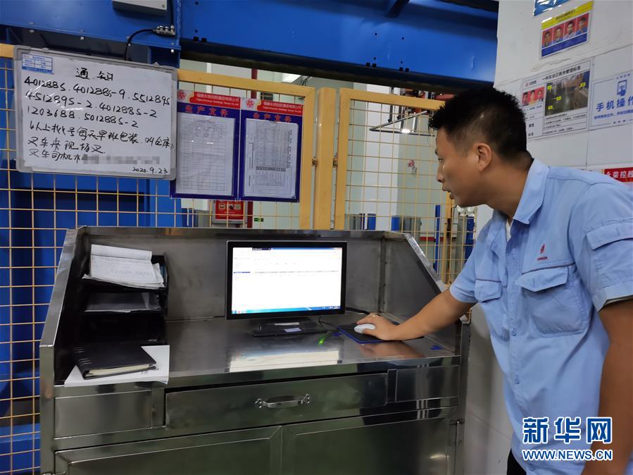 福建景丰科技有限公司工作人员通过电脑查看生产线运转情况(9月27日摄)。新华社记者 秦宏 摄