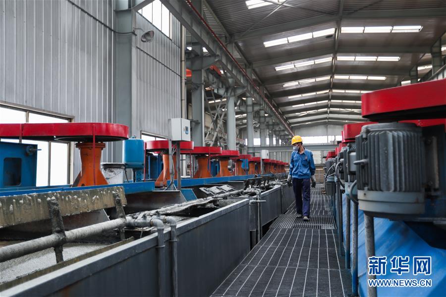在甘肃省酒泉市肃北蒙古族自治县亚峰矿业有限公司,工人在生产线上作业(8月4日摄)。新华社记者 马希平 摄