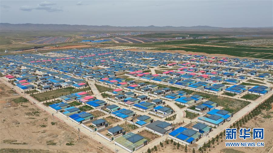 甘肃省武威市天祝藏族自治县松山镇的一处易地移民搬迁安置点(8月2日摄,无人机照片)。新华社记者 陈斌 摄