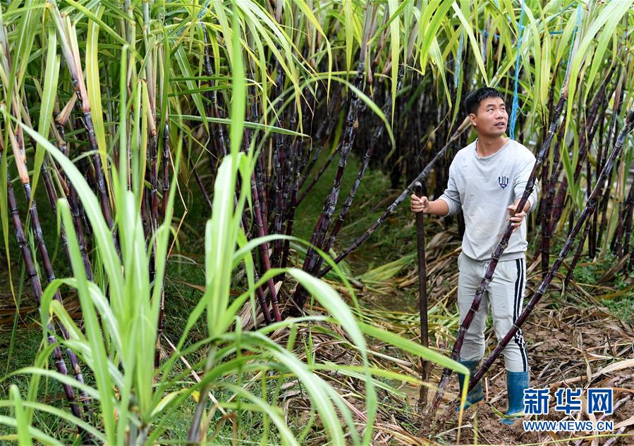 10月16日,村民在肥西县花岗镇一家扶贫产业园种植基地收割甘蔗。 近年来,安徽省肥西县花岗镇依托当地农业资源优势,打造特色扶贫种植、养殖基地,采用“产业园+贫困户”模式,通过土地流转、资金入股、劳务增收等形式带动贫困户脱贫增收。 新华社记者 刘军喜 摄