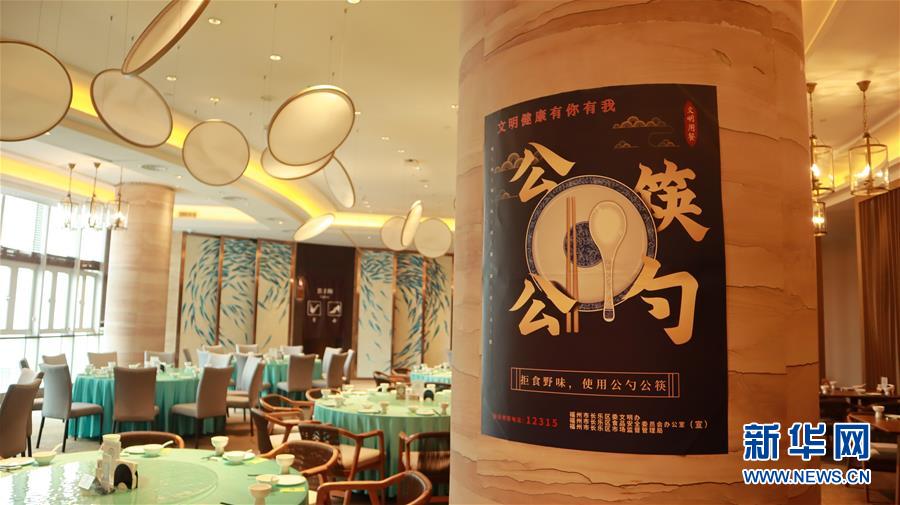 这是福州海瀛湾佰翔度假酒店餐厅里张贴的提倡使用公筷公勺的海报(9月2日摄)。新华社记者 赵雪彤 摄