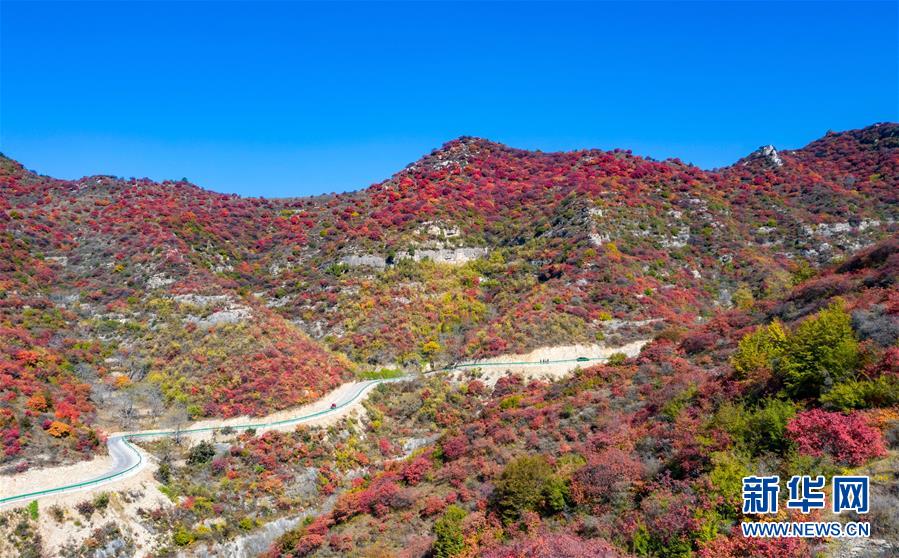 这是10月17日拍摄的涉县太行红叶大峡谷景色(无人机照片)。新华社记者 王晓 摄