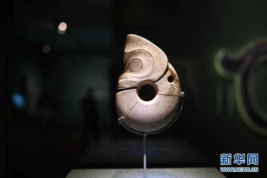 这是展出的玉玦形龙(10月17日摄)。 10月17日,“玉出红山——红山文化考古成就展”在北京中国国家博物馆开幕。展览共展出文物160余件,较为全面地展现了红山文化的基本脉络和独特内涵,揭示了其在中华文明进程中的重要作用。 新华社记者金良快摄