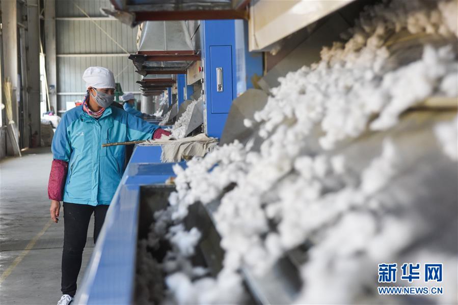10月17日,在新疆玛纳斯县乐土驿镇轧花厂,工人在轧花车间忙碌。 金秋十月,新疆各地的棉花进入大规模采摘期。在新疆昌吉回族自治州玛纳斯县,83万亩棉花喜获丰收,棉农忙着采收棉花,轧花厂内车来车往,一派繁忙的景象。 近年来,玛纳斯县大力推广机采棉种植,并通过增加农机购置补贴等惠民政策,鼓励有条件的农机合作社、种棉大户购买大型采棉机,助力棉花产业高质量发展。目前,全县共有采棉机221台,预计棉花采收工作10月底可全部结束。 新华社记者 丁磊 摄