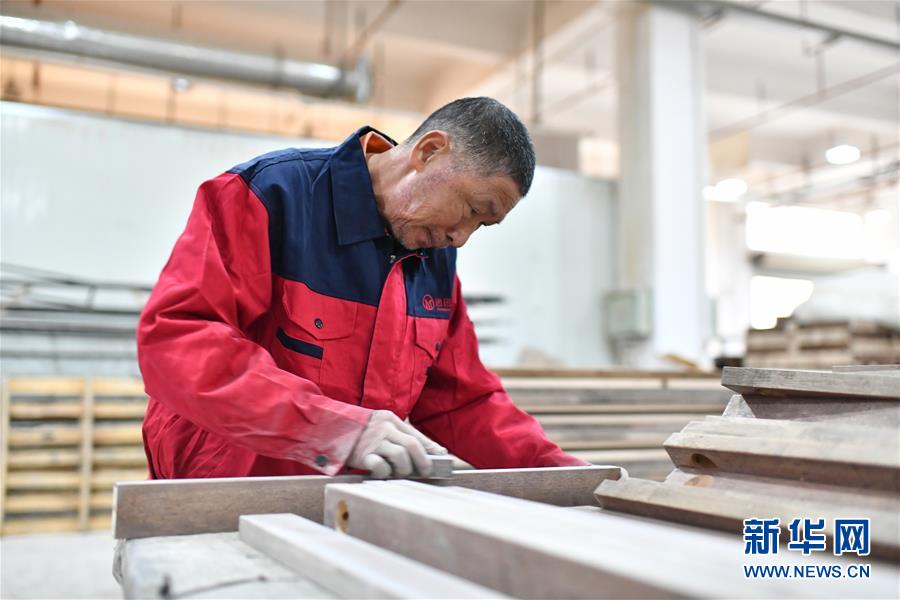 10月17日,曾被列为建档立卡贫困户的村民刘北平在江西团团圆家具有限公司的扶贫车间内打磨木料。 近年来,江西省赣州市因地制宜、因村施策,通过引导社会力量参与创办扶贫车间,鼓励服装纺织、家具制造等劳动密集型企业创办扶贫车间,帮助有就业能力和就业意愿,但家有老人和小孩无法外出就业的劳动力,实现家门口就业。截至今年8月,全市共有扶贫车间1100余家,吸纳贫困人口务工数超一万余人。 新华社记者 李鑫 摄
