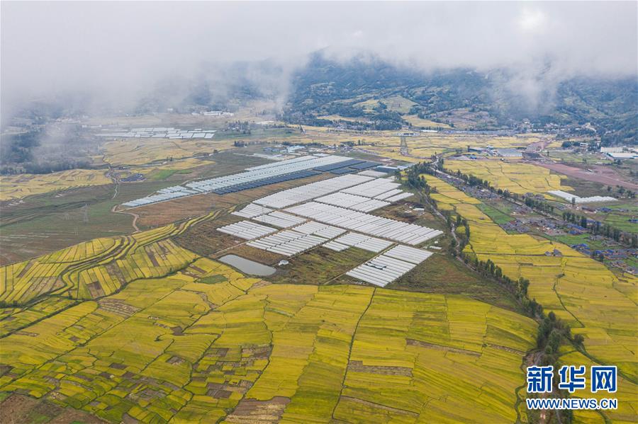 俯瞰昭觉县阿并洛古乡美丽田园和农业产业园(10月13日摄,无人机照片)。 位于四川省大凉山腹地的四川省昭觉县,是全国最大的彝族聚居县,也是四川省深度贫困县中贫困人口最多的县。经过近几年的努力,脱贫攻坚取得明显阶段性成效,彝区面貌发生历史性巨变。截至2019年底,全县实现136个贫困村退出,15506户70434名贫困人口减贫。 新华社记者张笑宇摄