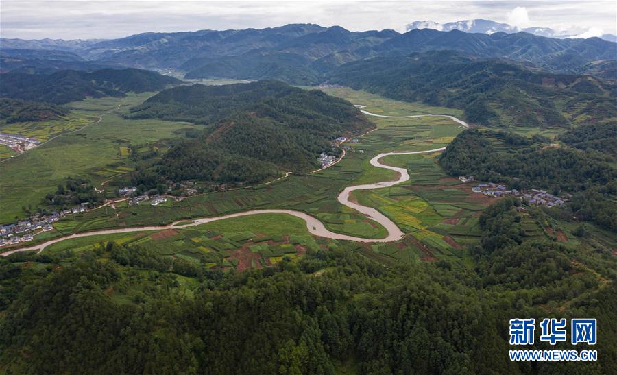 俯瞰海拔2560米的昭觉县洒拉地坡乡,河流蜿蜒曲折(7月24日摄,无人机照片)。 位于四川省大凉山腹地的四川省昭觉县,是全国最大的彝族聚居县,也是四川省深度贫困县中贫困人口最多的县。经过近几年的努力,脱贫攻坚取得明显阶段性成效,彝区面貌发生历史性巨变。截至2019年底,全县实现136个贫困村退出,15506户70434名贫困人口减贫。 新华社记者江宏景摄