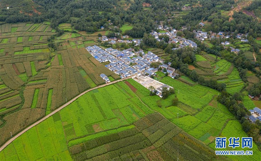 俯瞰昭觉县城城北乡瓦古村美丽的田园和新村聚居点(9月11日摄,无人机照片)。 位于四川省大凉山腹地的四川省昭觉县,是全国最大的彝族聚居县,也是四川省深度贫困县中贫困人口最多的县。经过近几年的努力,脱贫攻坚取得明显阶段性成效,彝区面貌发生历史性巨变。截至2019年底,全县实现136个贫困村退出,15506户70434名贫困人口减贫。 新华社记者江宏景摄