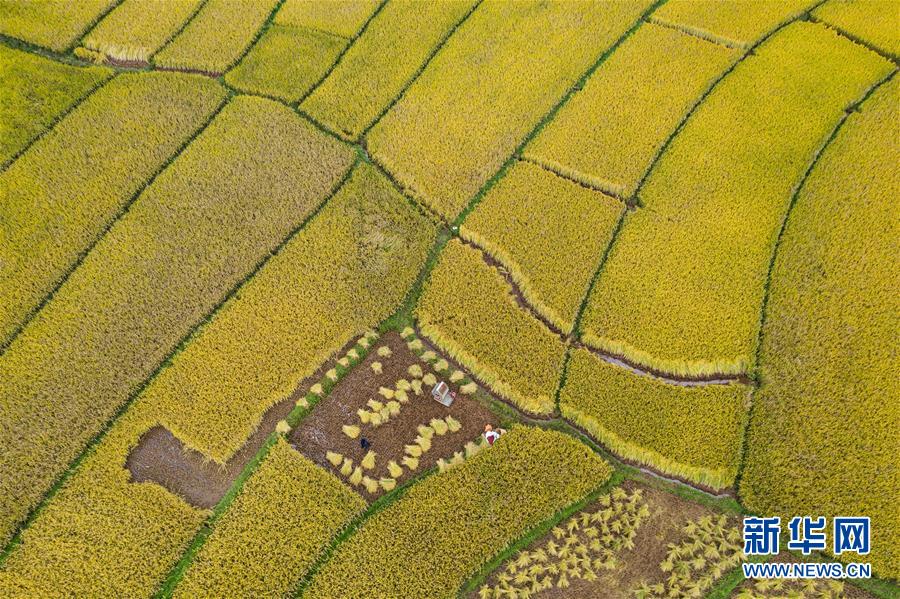 俯瞰昭觉县阿并洛古乡金黄的水稻田(10月13日摄,无人机照片)。 位于四川省大凉山腹地的四川省昭觉县,是全国最大的彝族聚居县,也是四川省深度贫困县中贫困人口最多的县。经过近几年的努力,脱贫攻坚取得明显阶段性成效,彝区面貌发生历史性巨变。截至2019年底,全县实现136个贫困村退出,15506户70434名贫困人口减贫。 新华社记者张笑宇摄