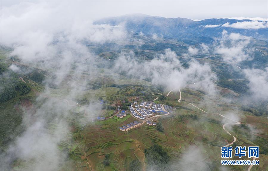 俯瞰云雾中的昭觉县阿并洛古乡洛伍阿木村集中安置点(9 月11日摄,无人机照片)。 位于四川省大凉山腹地的四川省昭觉县,是全国最大的彝族聚居县,也是四川省深度贫困县中贫困人口最多的县。经过近几年的努力,脱贫攻坚取得明显阶段性成效,彝区面貌发生历史性巨变。截至2019年底,全县实现136个贫困村退出,15506户70434名贫困人口减贫。 新华社记者江宏景摄