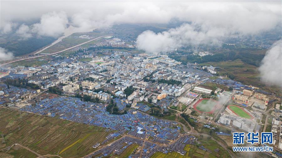 俯瞰云雾缭绕的昭觉县县城(10月10日摄,无人机照片)。 位于四川省大凉山腹地的四川省昭觉县,是全国最大的彝族聚居县,也是四川省深度贫困县中贫困人口最多的县。经过近几年的努力,脱贫攻坚取得明显阶段性成效,彝区面貌发生历史性巨变。截至2019年底,全县实现136个贫困村退出,15506户70434名贫困人口减贫。 新华社记者张笑宇摄