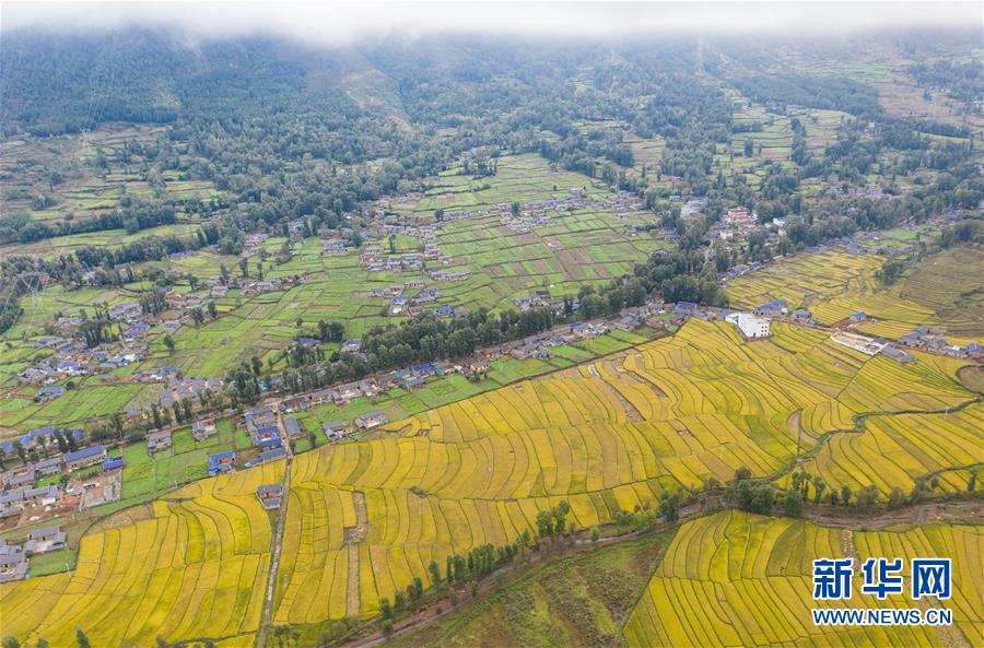 俯瞰昭觉县阿并洛古乡美丽田园(10月13日摄,无人机照片)。 位于四川省大凉山腹地的四川省昭觉县,是全国最大的彝族聚居县,也是四川省深度贫困县中贫困人口最多的县。经过近几年的努力,脱贫攻坚取得明显阶段性成效,彝区面貌发生历史性巨变。截至2019年底,全县实现136个贫困村退出,15506户70434名贫困人口减贫。 新华社记者张笑宇摄