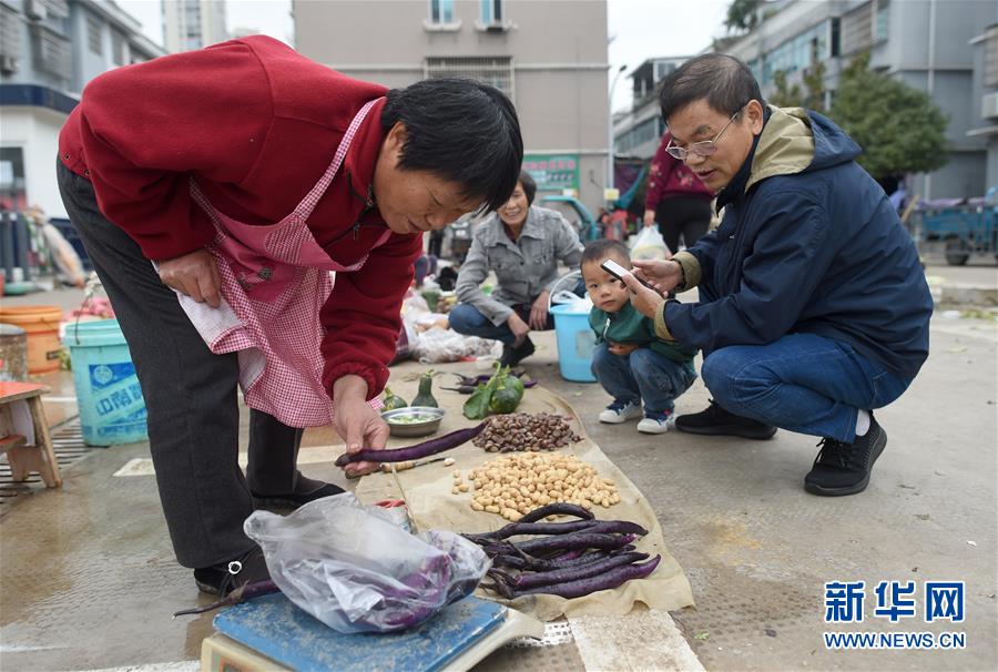 10月17日,诸暨市民在新安佳园农产品自产自销点买菜。 今年6月起,浙江省诸暨市综合行政执法局在城区选址增设新安佳园等3处农产品自产自销点,并由执法队员和城管志愿者进行规范管理,满足周边农户农产品销售需求的同时消除占道经营隐患。 新华社记者 韩传号 摄