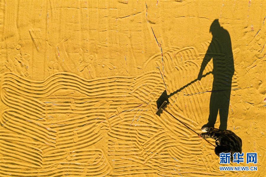 10月17日,山西省左权县麻田村的脱贫户在晾晒粮食(无人机照片)。新华社记者 曹阳 摄