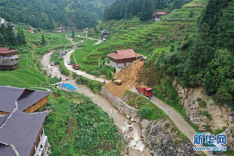 在广西融水苗族自治县杆洞乡党鸠村乌英苗寨,施工机械在脱贫产业路工地作业(7月3日摄,无人机照片)。 广西是全国脱贫攻坚主战场之一。“十三五”以来,广西举全自治区之力,补短板、强基础、增后劲,积极推动贫困地区各类交通、保障性住房、水利、城市基础设施等与人民群众切身利益息息相关的重大项目建设,使贫困地区各项事业取得长足进步,贫困地区经济社会发展发生翻天覆地的变化。 新华社记者 黄孝邦 摄