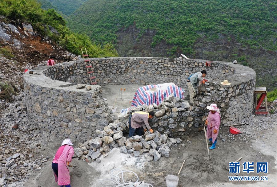 在广西隆林各族自治县德峨镇么基村冲头屯,当地村民在修建水柜(4月22日摄,无人机照片)。 广西是全国脱贫攻坚主战场之一。“十三五”以来,广西举全自治区之力,补短板、强基础、增后劲,积极推动贫困地区各类交通、保障性住房、水利、城市基础设施等与人民群众切身利益息息相关的重大项目建设,使贫困地区各项事业取得长足进步,贫困地区经济社会发展发生翻天覆地的变化。 新华社记者 陆波岸 摄