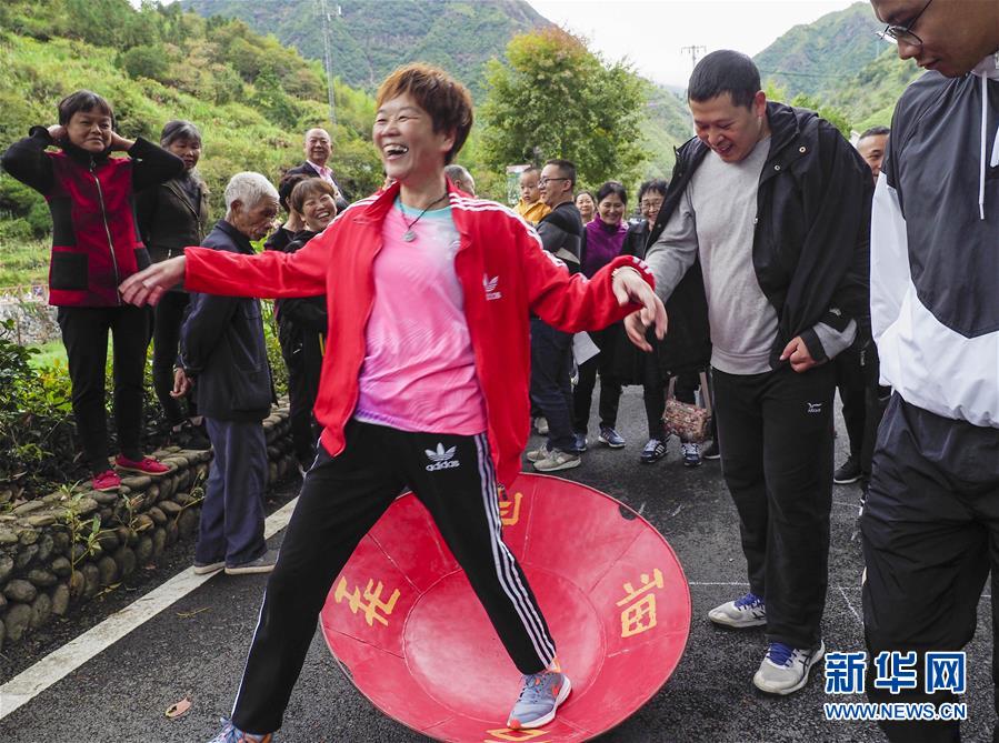 10月17日,景宁畲族自治县秋炉乡秋炉村,村民在体验畲族传统体育项目“摇锅”。 当日,一场趣味运动会在浙江省丽水市景宁畲族自治县秋炉乡秋炉村举行。来自浙江景宁、庆元和福建寿宁三县十个乡镇的村民,通过参加趣味运动、农活竞技等活动,分享丰收的喜悦。 新华社发(李肃人 摄)