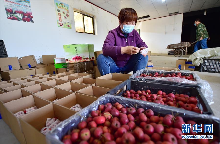 10月17日,在石家庄晋州市马于镇西贾庄村的山楂专业种植合作社包装车间,农户分拣包装山楂。 日前,河北石家庄晋州市马于镇西贾庄村的2800多亩山楂进入成熟期,农民抢抓农时收获山楂。西贾庄村采用“合作社+基地+农户”的模式,为农民提供技术服务和信息支持,拓宽销售渠道。山楂种植已经成为当地农民致富增收的支柱产业。 新华社发(张晓峰 摄)