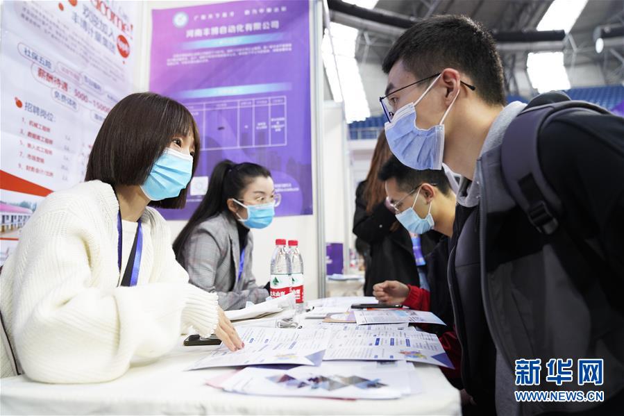 10月17日,在西南大学中心体育馆,应届毕业生参加由河南省组织的招才引智招聘会。 当日,河南省“2020招才引智专项行动”重庆专场西南大学站在位于重庆市北碚区的西南大学举行。河南省235家企事业单位参与现场招聘,提供2200余个岗位,涉及制造、教育、新能源、新材料、地产、医疗医药等多个领域。 新华社发(秦廷富 摄)