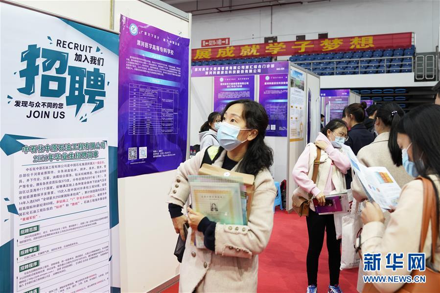 10月17日,在西南大学中心体育馆,应届毕业生参加由河南省组织的招才引智招聘会。 当日,河南省“2020招才引智专项行动”重庆专场西南大学站在位于重庆市北碚区的西南大学举行。河南省235家企事业单位参与现场招聘,提供2200余个岗位,涉及制造、教育、新能源、新材料、地产、医疗医药等多个领域。 新华社发(秦廷富 摄)