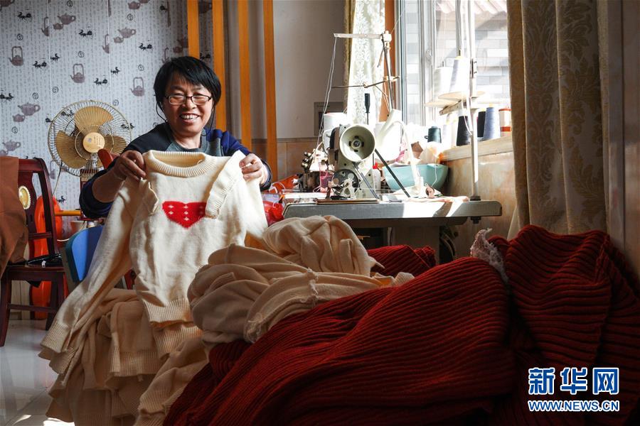 10月17日,村民徐芬在家中生产儿童羊毛衫。她还生产丝棉被,最近还领到了开办民宿的执照。