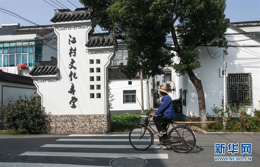 10月17日,村民骑车经过开弦弓村的江村文化弄堂。新华社记者 杨磊 摄