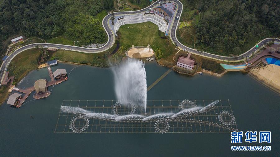 这是第四届绿博会园区内的水上喷泉(10月17日摄,无人机照片)。新华社记者 陶亮 摄