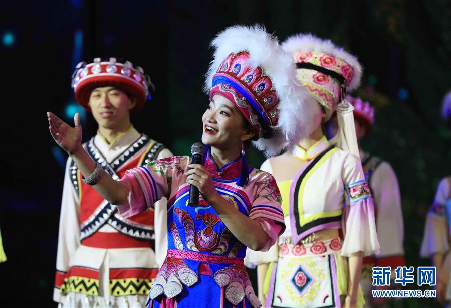 10月16晚,湖南张家界魅力湘西艺术团的演员在舞台上表演节目《马桑村儿搭灯台》。 位于湖南张家界市武陵源区的魅力湘西艺术团是当地文化旅游融合发展的一张响亮的名片。创办以来,魅力湘西通过对参演阵容、节目品质、舞蹈编排等不断提质优化,逐步发展成为享誉国内外的大型民俗演艺节目,成为当地拉动夜间经济,助热旅游消费的新动能。 新华社发(吴勇兵 摄)