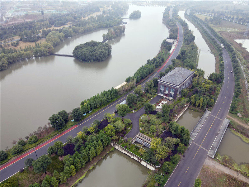 这是10月16日拍摄的安徽省颍上县沿淮水利生态景区——五里湖湿地公园(无人机照片)。新华社记者 刘军喜 摄