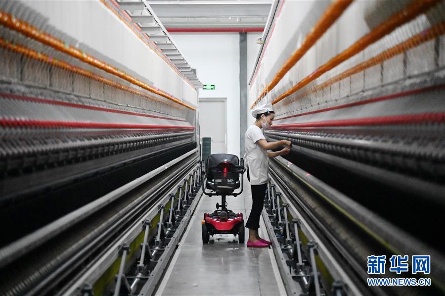 夏邑县恒天永安新织造有限公司工人在车间作业(9月26日摄)。新华社记者 张浩然 摄