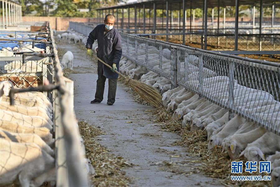 工人在宁夏农垦贺兰山牛羊产业(集团)有限公司暖泉肉羊良繁中心喂羊(10月18日摄)。 位于宁夏银川市贺兰山东麓的宁夏农垦贺兰山牛羊产业(集团)有限公司,近年来采取规模化、标准化、集约化、产业化方式发展牛羊养殖产业。 据了解,目前该公司已建成肉牛养殖场2座、肉羊养殖繁育场2座,肉牛存栏量1.4万头,肉羊存栏6万只,初步建成集良种繁育、养殖、加工、销售、科研为一体的现代化循环牧业基地。 新华社记者 王鹏 摄