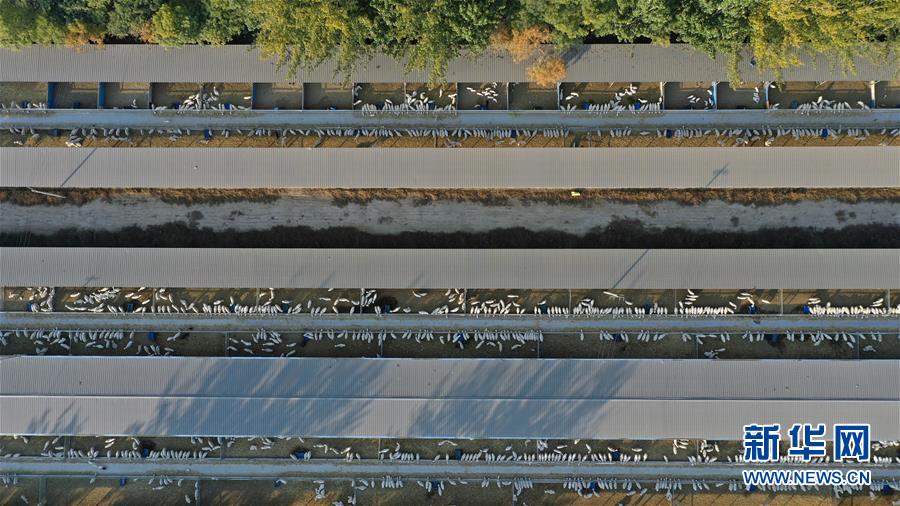 这是宁夏农垦贺兰山牛羊产业(集团)有限公司暖泉肉羊良繁中心(10月18日摄,无人机照片)。 位于宁夏银川市贺兰山东麓的宁夏农垦贺兰山牛羊产业(集团)有限公司,近年来采取规模化、标准化、集约化、产业化方式发展牛羊养殖产业。 据了解,目前该公司已建成肉牛养殖场2座、肉羊养殖繁育场2座,肉牛存栏量1.4万头,肉羊存栏6万只,初步建成集良种繁育、养殖、加工、销售、科研为一体的现代化循环牧业基地。 新华社记者 王鹏 摄