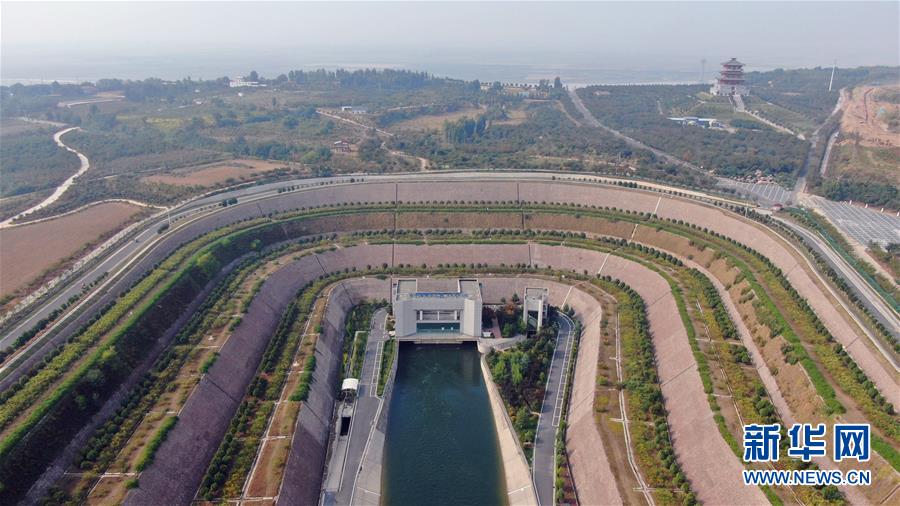 这是10月16日在郑州拍摄的南水北调穿黄隧洞进口南岸明渠(无人机照片)。 新华社记者 刘诗平 摄