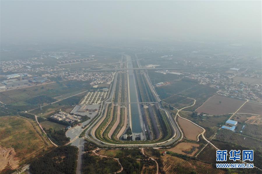 这是10月16日在郑州拍摄的南水北调穿黄隧洞进口南岸明渠(无人机照片)。 新华社记者 刘诗平 摄